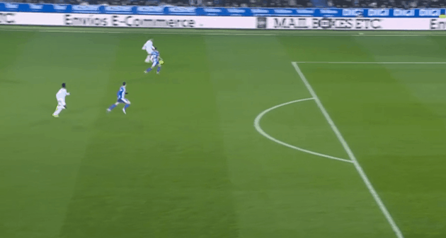 比赛开始后,双方的节奏并不快,但是强大的皇马一直牢牢占据进攻端的主动权,两个边路来回的调度,不断拉扯阿拉维斯的防线。